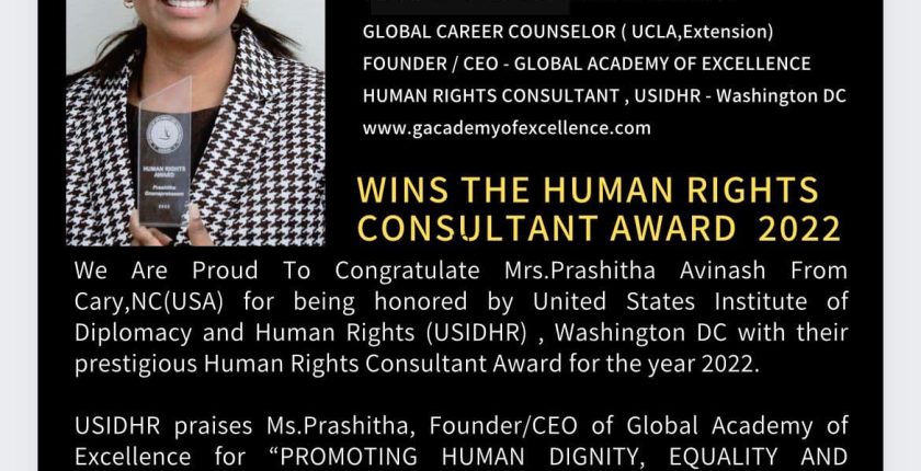 I Have Never Imagined That My First International Recognition Would Be This Huge ! Deeply Honored And Blessed To Have Received The Human Rights Consultant 2022 Award From US INSTITUTE OF DIPLOMACY & HUMAN RIGHTS ,WASHINGTON,DC. Being One among the 10 Awardees chosen Across US & Canada was a great blissful experience and being THE ONLY INDIAN amongst them was a true moment of joy and happiness.